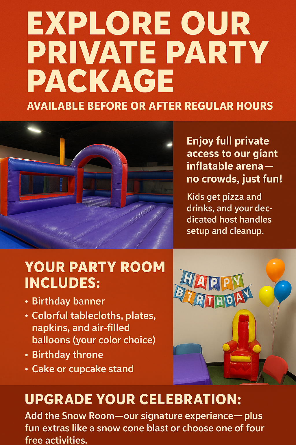 Not booking a party but still want to enjoy Snowy Fun? We’ve got great options just for you!