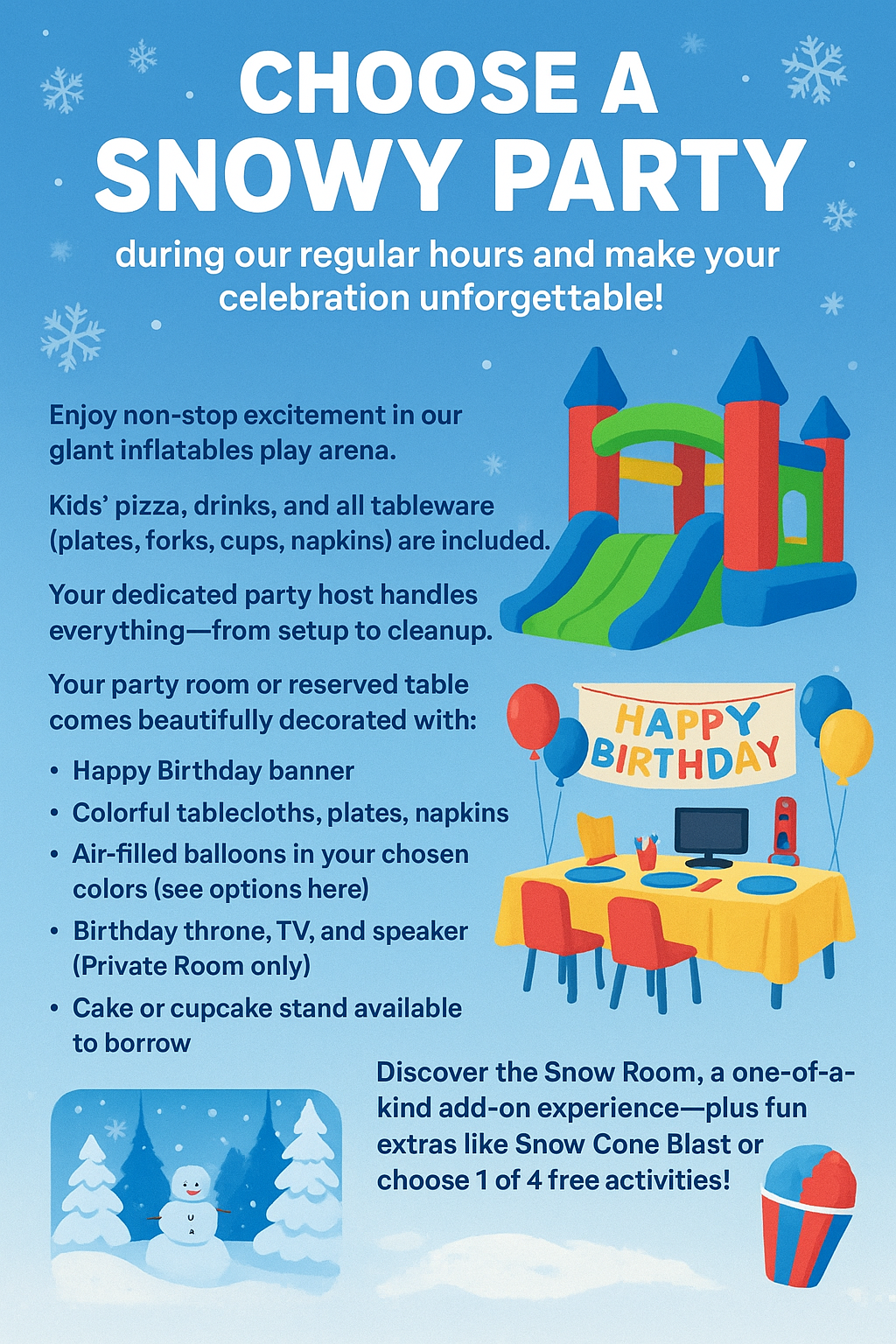 Your kid is special—choose a Snowy Fun party, not just a regular one.